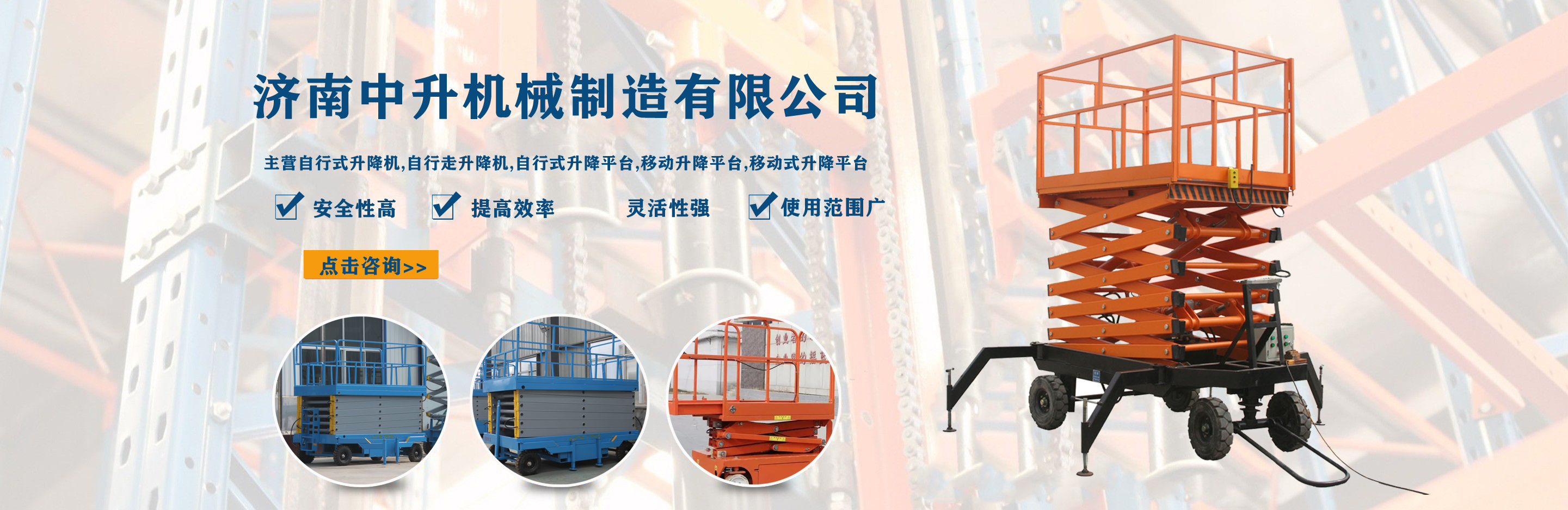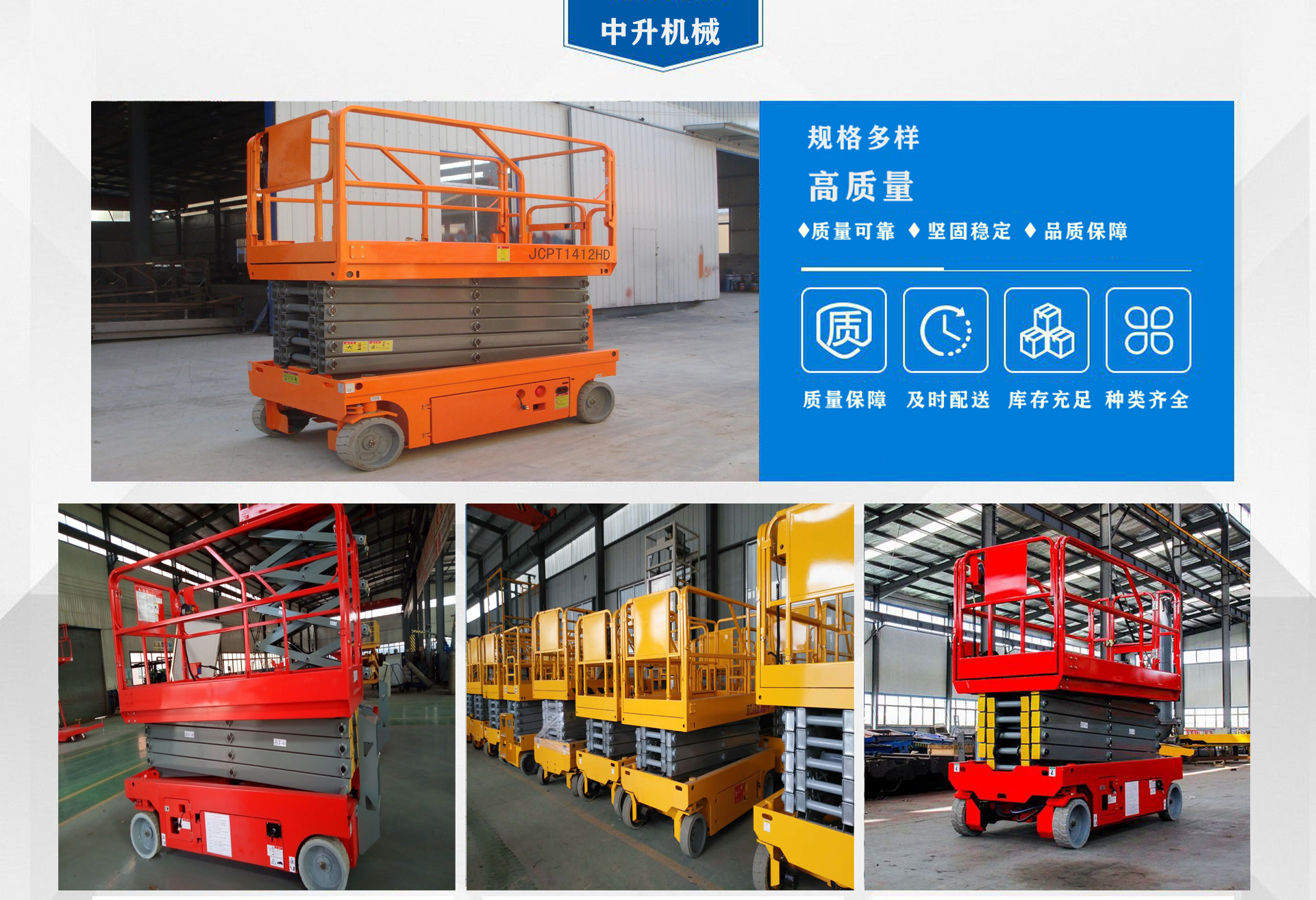 濟南中升機械制造有限公司主營自行式升降機,自行走升降機,自行式升降平臺,移動升降平臺,移動式升降平臺等產(chǎn)品,產(chǎn)品廣泛用于廠房維護、工業(yè)安裝、設備檢修、物業(yè)管理、倉庫、航空、機場、港口、車站、加油站、體育場、展覽館等多種行業(yè)和場所, 公司設備精良、工藝合理、檢測手段齊全,技術力量充足,公司創(chuàng)立伊始即本著“專注、專心”的經(jīng)營理念,依托技術團隊優(yōu)勢和設備硬件保障,全力打造良心的升降平臺企業(yè)。 我公司始終以“品質為本,服務至上”作為企業(yè)宗旨。只要你訂購了我公司的產(chǎn)品,無論你身處何方,我們都會及時派出技術人員為你服務!...